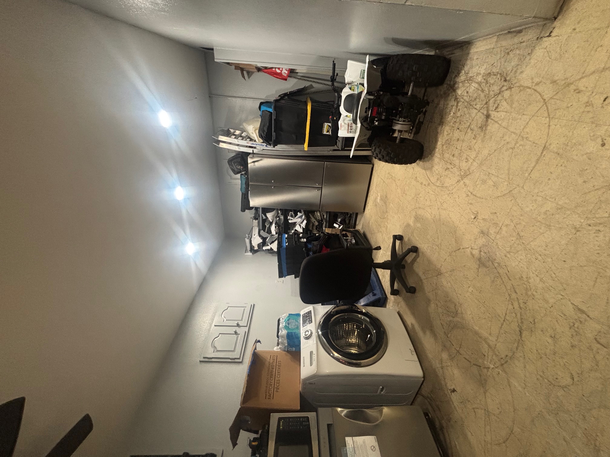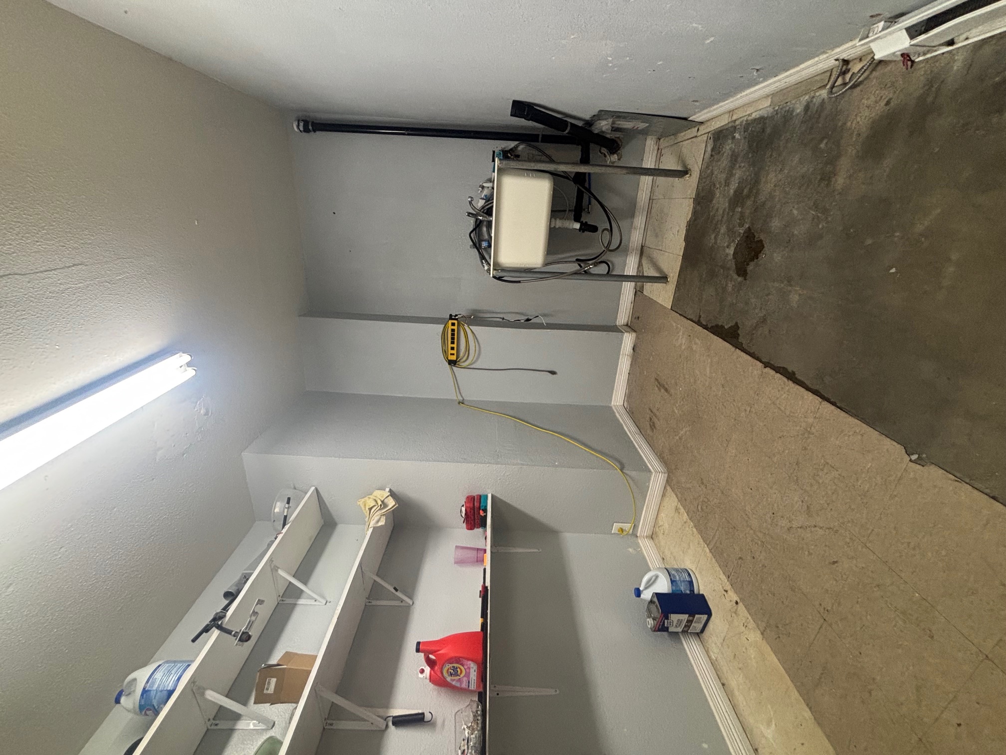 The space includes one private restroom and a tall roll-up door, allowing for easy truck and vehicle loading/unloading directly into the unit.